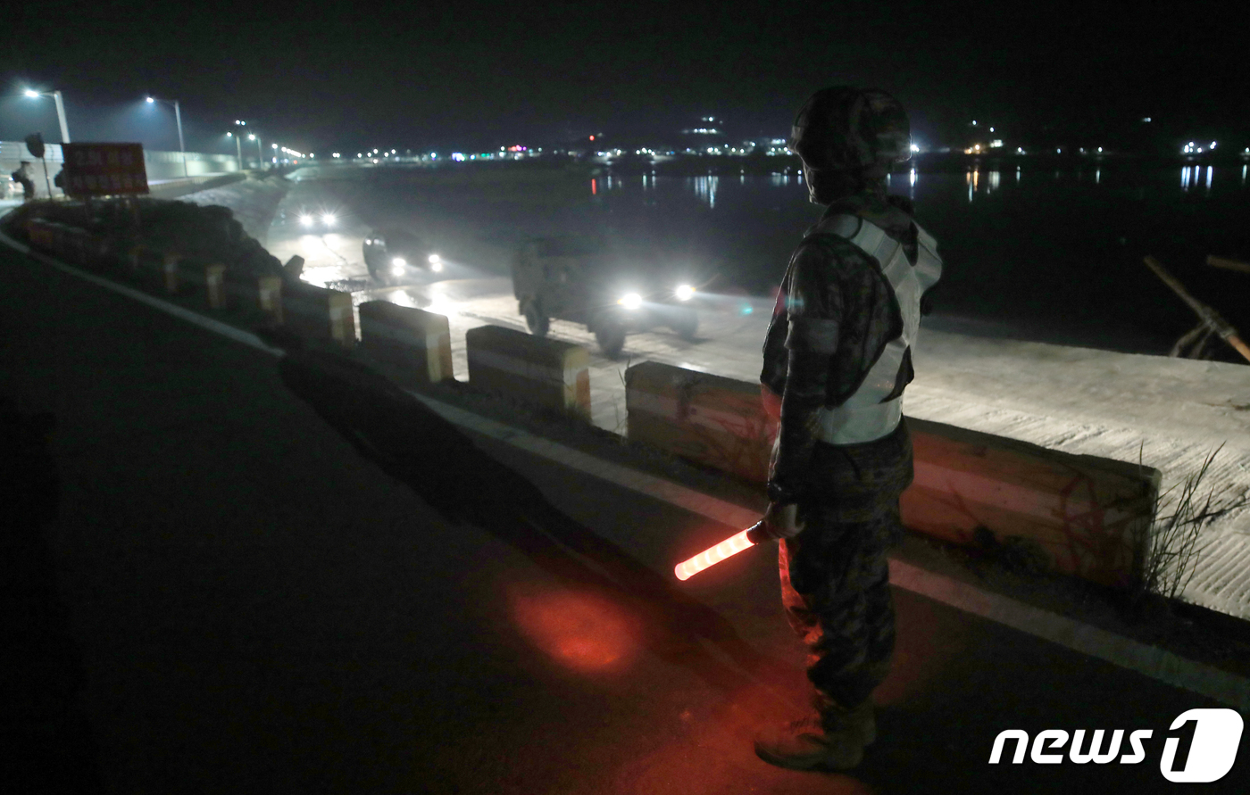 (연평도=뉴스1) 구윤성 기자 = 17일 밤 인천 옹진군 연평도에서 해병대 장병들이 서북도서 순환훈련을 실시하고 있다. 2020.6.18/뉴스1
