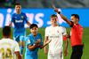 스페인 프로축구 발렌시아의 이강인이 19일 레알 마드리드와의 라리가 경기 후반 44분 세르히오 라모스를 거칠게 수비하다 쓰러뜨린 뒤 곧바로 레드카드를 받고 있다. 로이터 연합뉴스 |