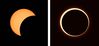 한국천문연구원이 촬영한 부분일식(좌)과 금환일식(우), 한국천문연구원 제공 |