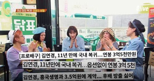 이어 김연경은 “최고 연봉을 준다고 했는데 그렇게 되면 나가야 하는 선수가 생기기 때문에 피해를 주고 싶지 않아서 다른 선수들 다 계약하고 남는 금액이 얼마냐 물어봤더니 3억 5000만 원이라고 하더라. 남는 돈 달라, 신경 안 쓰겠다고 했다”라고 밝혀 MC들을 놀라게 만들었다.