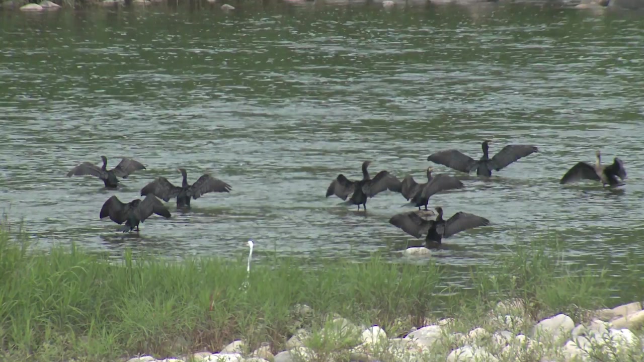 수십 마리가 이동하며 주변 민물고기를 먹어 치우고 있습니다.