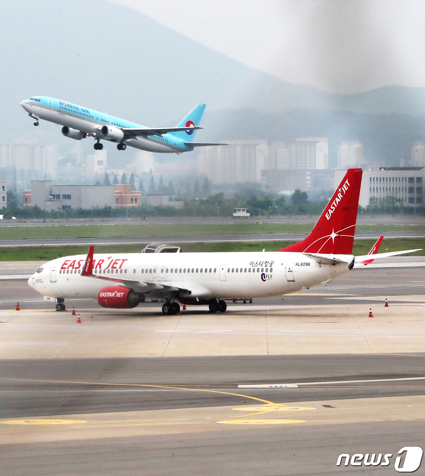(김포공항=뉴스1) 정진욱 기자 = 이스타항공은 29일 오후 서울 강서구 본사에서 'M&A 관련 긴급 기자회견'을 열고, 이상직 더불어민주당 의원 가족이 소유하고 있는 이스타홀딩스 보유 주식을 모두 회사측에 헌납하겠다고 밝혔다. 이스타항공은 현재 250억원에 달하는 체불임금 해소 문제로 제주항공과 이스타항공의 인수 작업이 답보 상태에 빠져 있다. 사진은 29일 오후 김포공항 국내선 계류장에 이스타항공 항공기가 서 있다.2020.6.29/뉴스1