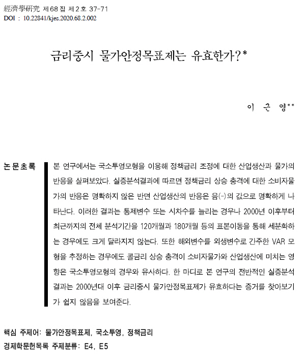 이근영 성균관대 경제학부 교수는 한국경제학회지에 등재한 '금리중시 물가안정목표제는 유효한가'논문에서 "현실적으로 금리조정을 통해 물가안정을 이룩하는 것은 쉽지 않다"고 지적했다.