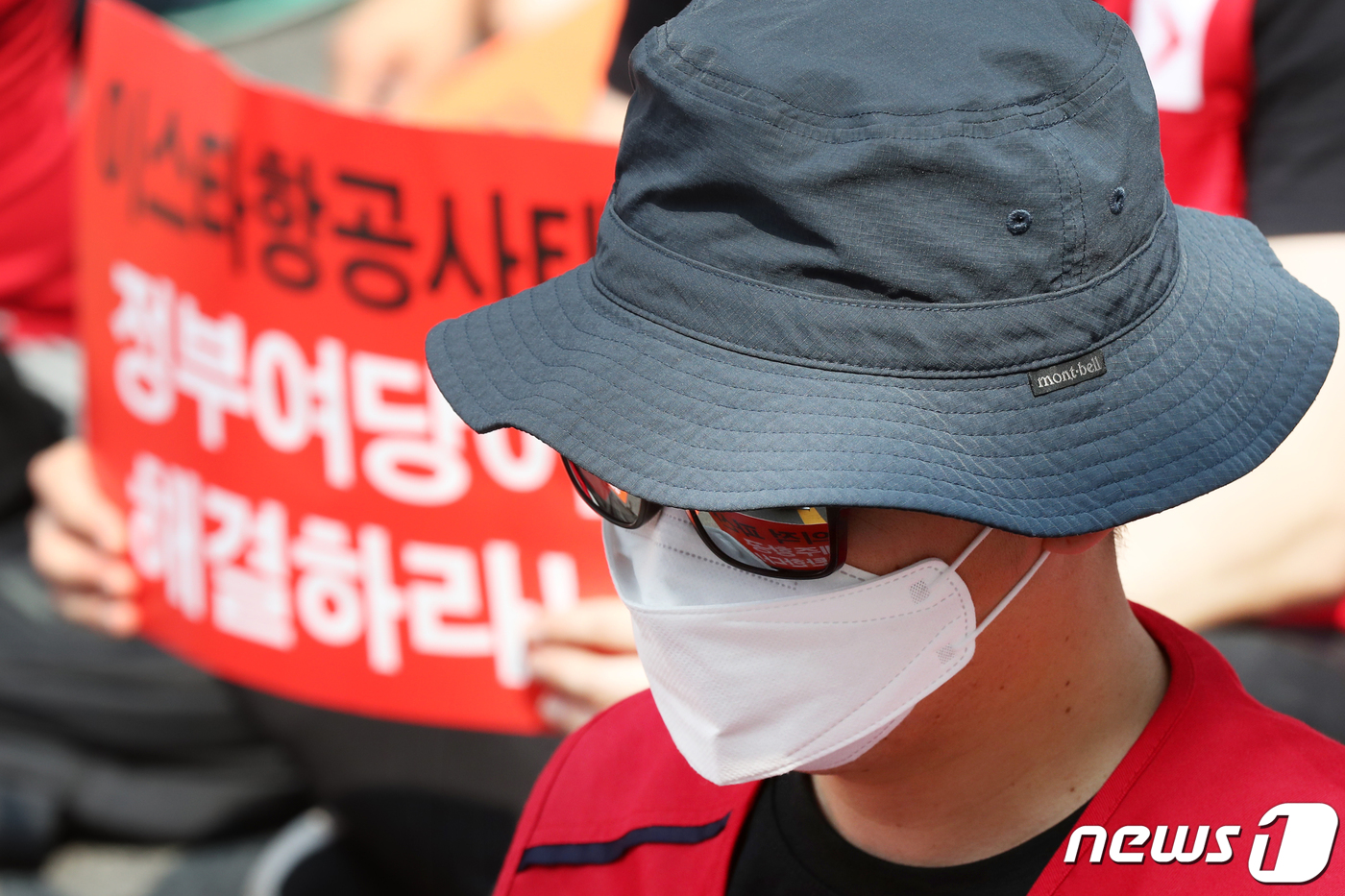 이날 참가자들은 "제주항공이 이스타항공 인수를 거부하고 파산으로 내몬다면 제주항공에 책임을 묻겠다"라면서 애경그룹(제주항공의 모기업)에 인수를 재촉하는 한편 정부에도 이번 M&A 상황과 관련한 책임을 촉구했다. 2020.7.8/뉴스1