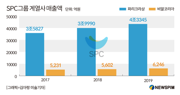 매출도 나쁘지 않다. 브랜드마다 차이는 있지만 전반적으로 성장세다. 특히 파리바게뜨 등을 운영 중인 파리크라상과 배스킨라빈스 등을 운영 중인 계열사 비알코리아는 꾸준히 매출이 오르고 있다. 실제 파리크라상은 2017년 3조5827억원에서 지난해 4조3345억원으로, 비알코리아는 같은 기간 5231억원에서 6246억원으로 매출이 올랐다.