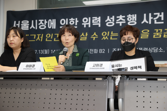 13일 오후 A씨 측 법률대리인인 김재련 변호사와 한국여성의전화, 한국성폭력상담소,피해 호소인 A씨 서울 은평구 한국여성의전화 사무실에서 열린 ‘서울시장에 의한 위력 성추행 사건’ 기자회견에서 “장례기간을 최대한 기다린 후 오늘 발인을 마친 오후에 기자회견을 연 것”이라고 설명했다.