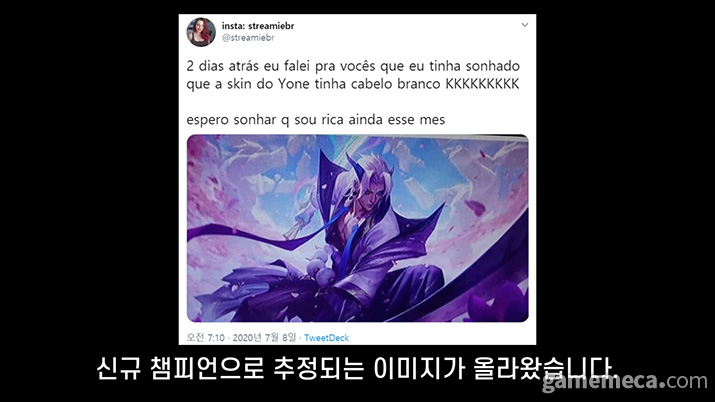 지난 7월 8일, 리그 오브 레전드 릴리아 스플래시 아트를 유출했던 트위터 계정에 신규 챔피언으로 추정되는 이미지가 올라왔는데요, 여러 정황과 증거들이 그가 '요네'임을 가리키고 있습니다.