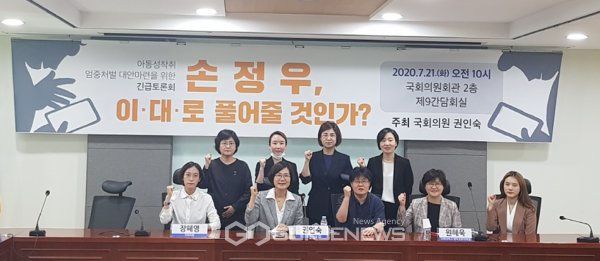 권인숙 국회의원(더불어민주당·비례대표)이 주최한 <손정우, 이대로 풀어줄 것인가? 아동성착취 엄중처벌 대안마련을 위한 긴급토론회>가 21일(화) 국회의원회관 제9간담회실에서 개최되었다.