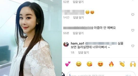 캡처 사진에는 "아줌마 안 예뻐요"라는 악플이 댓글로 게재돼있다. 이에 함소원은 "실물 보면 놀라실 텐데 너무 이뻐서~"라며 쿨하게 사이다로 대응했다. 함소원은 해당 캡처본과 함께 "#진짭니다 #기절할수도"라는 글을 함께 남기며 응원을 이끌어내고 있다.