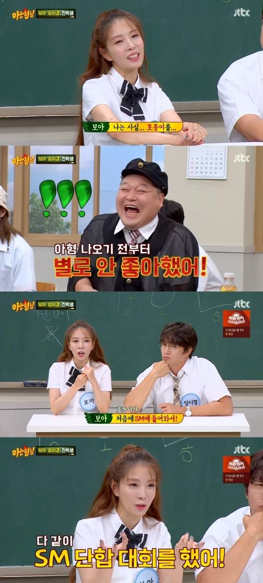 이어 "내가 ‘아는형님’ 나겠다고 했더니 ‘너 전에 나갔을 때 되게 재미 없더라 나갈 거면 모창을 준비하든가, 춤을 준비하든가’라고 하시더라”라고 말했다. 그러면서 보아는 "'강호동이 이상한 걸 시키고, 같이 나간 이상엽이 성대모사를 한 거다'라고 했다"고 말했다.