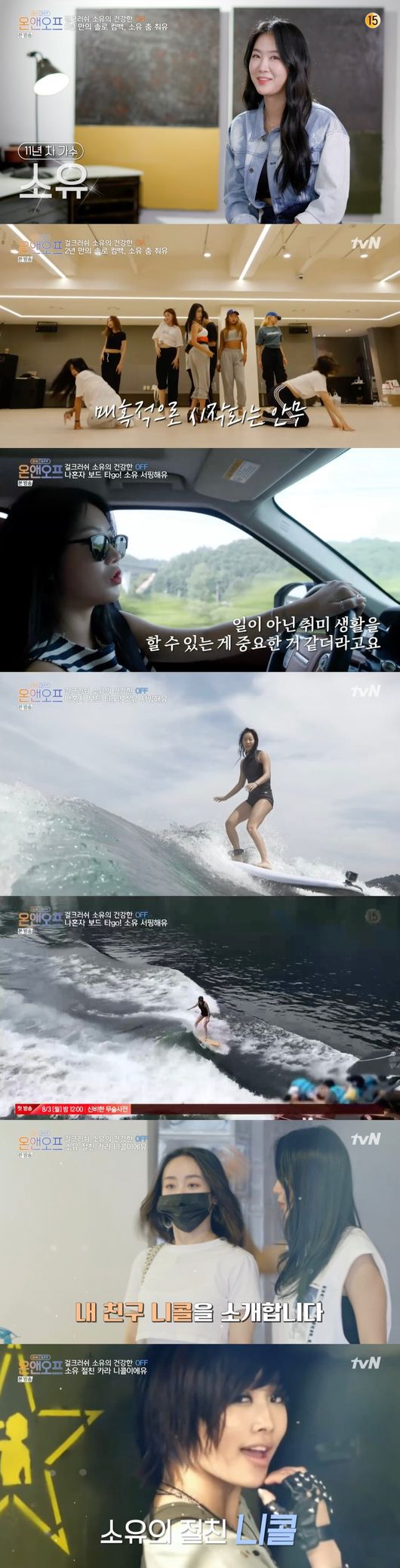 약 1시간 40분 동안 서핑을 즐긴 소유는 절친 니콜에게 전화를 걸었다. 소유는 "니콜이랑 친구한지 10년됐다. 데뷔하자마자 친해졌다"고 말했다. 또한 소유는 니콜에게 "밥 같이 먹자"고 삼겹살과 냉면 먹방을 예고하면서 니콜을 자신의 집으로 초대했다.
