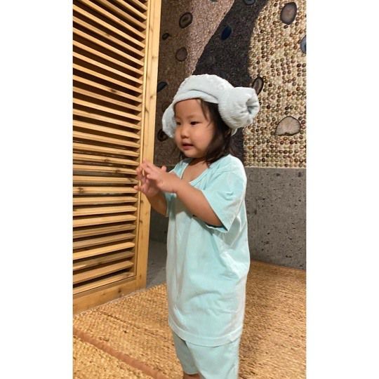 공개된 사진 속에는 속초에서 찜질방을 방문한 이윤미 가족의 모습이 담겨 있다. 양머리를 한 채 옹기종기 앉아 있는 이윤미, 주영훈의 딸들이 러블리하다.