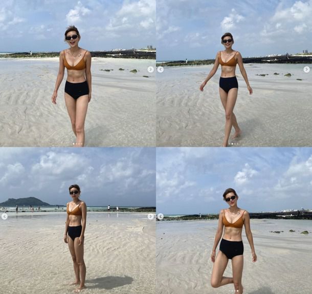 공개된 사진 속에는 비키니를 입고 해변을 즐기는 송해나의 모습이 담겼다. 그는 카라멜색 브라탑과 검은색 하이웨스트 하의를 입고 탄탄한 몸매를 뽐냈다. 특히 송해나는 선명한 복근으로 건강한 매력을 자랑했다.