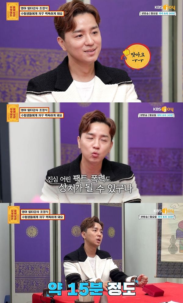10일 방송된 KBSJOY '무엇이든 물어보살'에서는 영어 알타강사 조정식이 게스트로 출연했다.