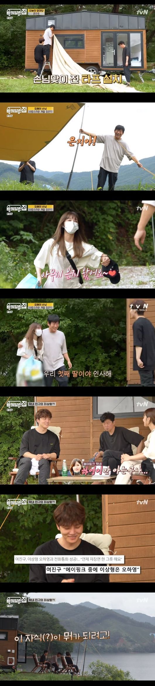 타프를 다 치고 난 후 네 사람은 앉아서 이야기를 나눴고 정은지는 리더 아니냐고 묻는 여진구에게 "아니다. 혹시 하영이만 아는 거냐. 이상형을 하영이라고 하셨던데" 라고 말했고 여진구는 당황해했다.