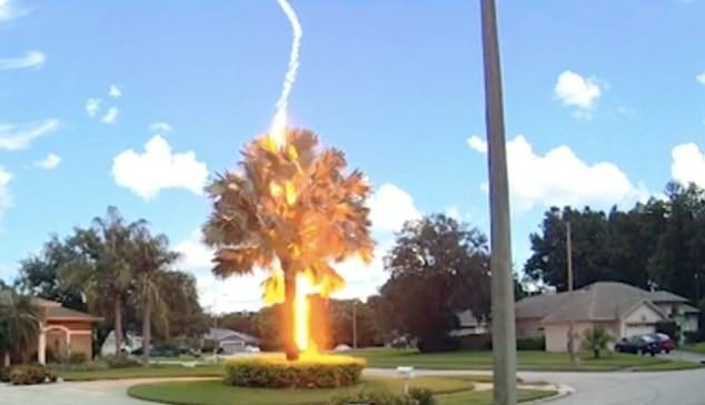 ‘마른하늘에 날벼락’은 이런 것…나무에 내리 꽂힌 번개(영상)