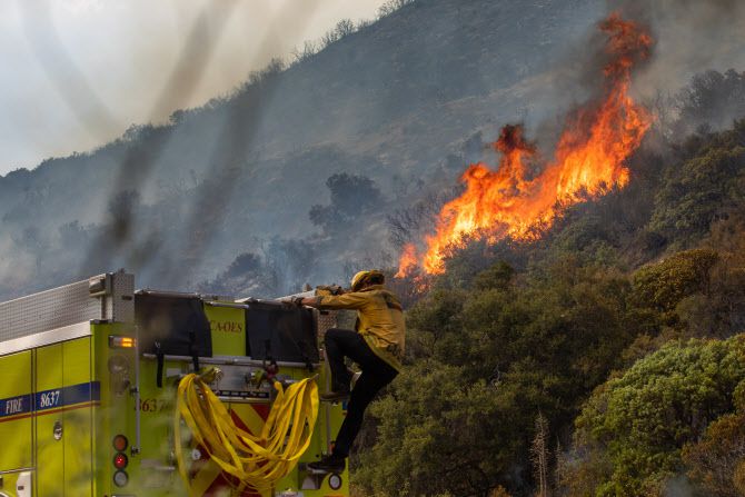 한편 미국 캘리포니아 로스앤젤레스(LA) 카운티 산지에서 지난 12일 시작된 이번 화재는 폭염 때문에 화재 진압에 더욱 어려움을 겪고 있다.