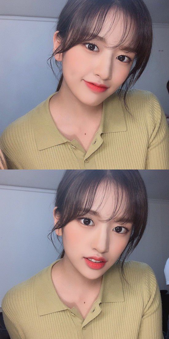 17일 아이즈원 sns에는 “오늘은 더워욤”이라는 메시지와 함께 멤버 유진의 사진이 게재됐다.