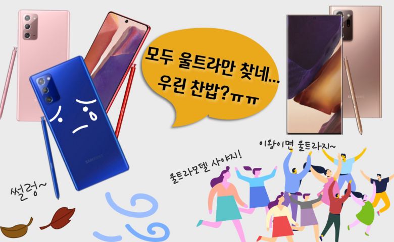 갤노트20은 일반모델과 고급형 ‘갤럭시노트20 울트라’ 2종으로 출시됐다. 일반 모델은 119만9000원, 울트라 모델은145만2000원이다. 울트라와 일반모델은 차이가 크다. 일반 모델은 성능과 가격 측면에서 메리트가 없다는 평가다.
