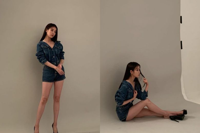 공개된 사진에는 짧은 치마와 하이힐을 착용한 아이유가 길고 가는 다리를 드러낸 모습이 담겼다.