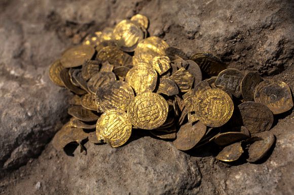 이스라엘의 유적 발굴터에서 1000년 된 금화들이 무더기 발굴됐다.