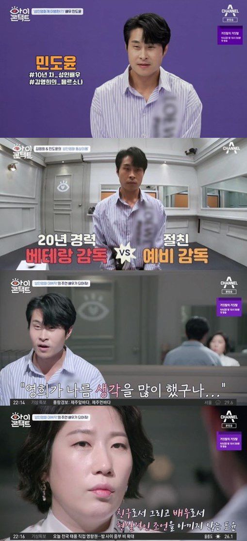 민도윤과 김영희는 지난해 4월께 SNS를 통해 친분을 맺고 실제 '절친'이 됐다. 카페에서 단둘이 커피를 마시며 이야기를 할 정도로 친한 사이. 그런 두 사람은 지난 26일 방송된 채널A '아이콘택트'에 출연해 눈맞춤을 했다.