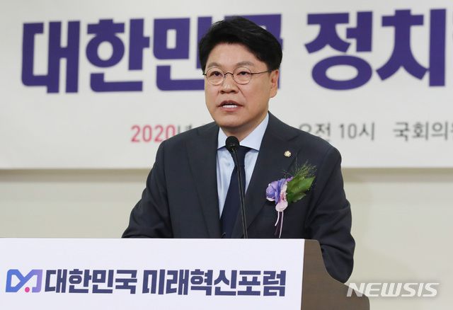 [서울=뉴시스]김진아 기자 = 장제원 미래통합당 의원이 지난 6월9일 서울 여의도 의원회관에서 열린 '대한민국 미래혁신포럼' 21대 국회 개원 기념 특별강연에서 인사말을 하고 있다. 2020.06.09. bluesoda@newsis.com