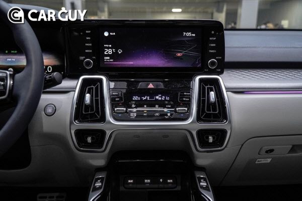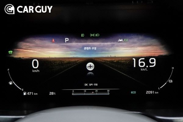 하이브리드 전용인 네이비 그레이 인테리어가 상당히 고급스럽다. 화사함까지 느껴진다. 실내에는 새로운 장비를 대거 채택했다. 12.3인치 계기반, 10.25인치 센터 디스플레이뿐 아니라 기아차가 최근 많이 사용하는 다이얼 방식 기어 노브까지 달았다. 계기반은 총 네 가지 테마를 제공한다. 드라이브 모드에 따라 모양을 바꾸는 것뿐 아니라 기상 상황이나 시간에 따라 각기 다른 디자인으로 옷을 바꿔 입는다. 10.25인치 센터 디스플레이에는 기아차의 최신 UI가 적용되어 있다. 가독성이 떨어지는 것 외에 단점은 없다. 다양한 편의장비로 가득 채워져 있다. 기아페이, 빌트인캠, 자연의 소리, 후석 대화 모드, 서라운드 뷰, 후석 취침 모드 등 원하는 장비는 모두 들어 있다.