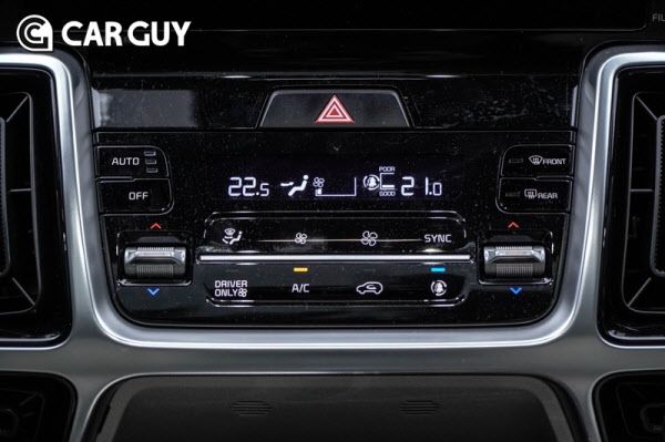 센터 디스플레이 하단에 자리한 공조기 조작부는 갑자기 시간 여행을 온 듯한 기분을 들게 한다. 20세기 감성이 느껴진다. 구성만 올드할 뿐 터치 방식을 지원한다. 송풍구 디자인은 독특하다. 상하로 분리되어 있다. 아래쪽에 위치한 송풍구는 좌우로만 움직이고 별도로 닫을 수 없다. 장시간 에어컨을 틀고 있으면 바람이 무릎으로 향한다. 무릎이 시리다.