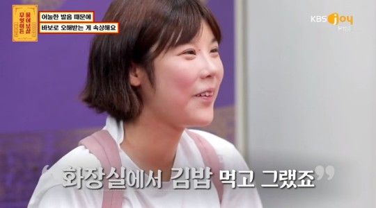 이어 그는 "회사 다닐 때 발음도 안 좋고 어리숙해 보이니까. 회사에서도 전화 받는 업무는 제가 못했다"며 "거의 왕따 당했다. 화장실에서 김밥 먹고 그랬다"고 말했다.