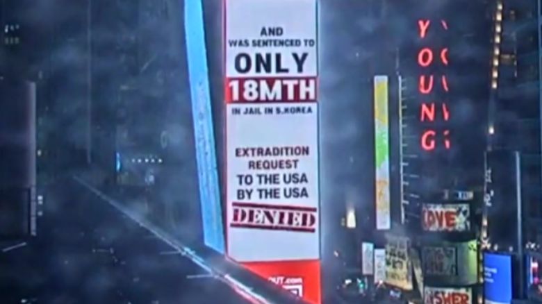 아동 성 착취 영상물 사이트 '웰컴투비디오' 운영자 손정우의 미국 송환 불허 결정과 관련해 우리 사법부를 규탄하는 광고가 오늘부터 미국 뉴욕의 타임스퀘어에 내걸렸습니다.