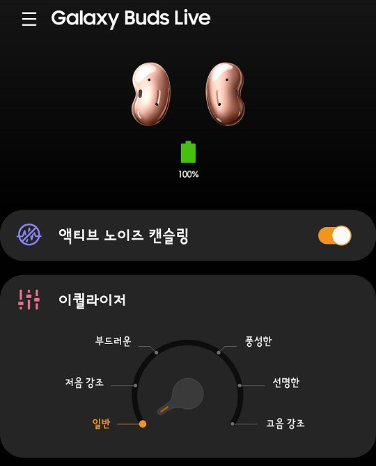 음질은 하만의 프리미엄 오디오 브랜드 AKG가 튜닝한 12mm의 스피커와 중저음 사운드를 살려주는 '베이스 덕트'가 만족감을 안겨줬다. 갤럭시 웨어러블 앱에서 사운드 모드(이퀄라이저, EQ를 조정하면 ▲일반 ▲저음강조 ▲부드러운 ▲풍성한 ▲선명한 ▲고음 강조 등 사용자가 원하는 음향 조정도 가능하다.