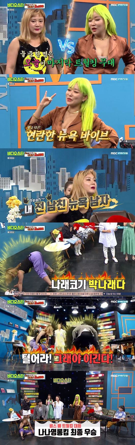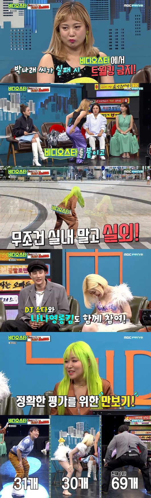 너무 열심히 트월킹을 춘 박나래는 "퇴근해야겠다. 골반이 나간 것 같다"라고 말해 웃음을 자아냈다. 결과는 박나래는 76개. 나나영롱킴이 82개를 기록했다. 나나영롱킴이 트월킹 대결 최종 우승을 차지했다. 박나래는 "병원에 물어봐달라. 트월킹하다가 다치면 어느 병원으로 가야하는지 확인해달라"라고 말해 주위를 폭소케 했다.