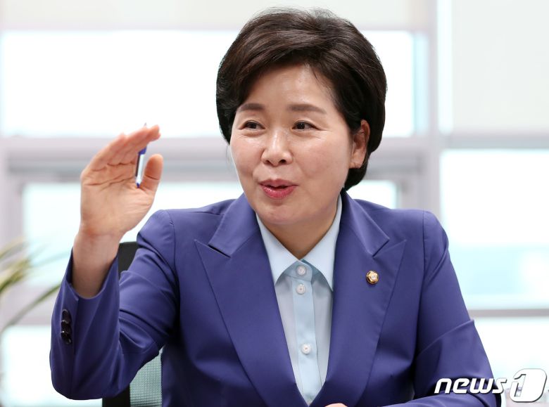 양향자 더불어민주당 의원이 21일 뉴스1과 인터뷰를 하고 있다. 2020.8.21/뉴스1 © News1 박세연 기자 |