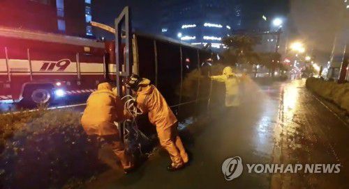 여수시 교동 수산시장에서는 오후 9시 53분께 하수가 역류해 배수 작업이 이뤄졌다.