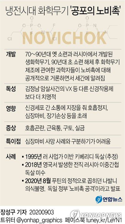 노비촉은 냉전 시대 말기에 소련이 개발한 물질로 일본 지하철 테러의 사린가스나 김정남 암살사건의 VX 등 다른 신경작용제보다 더 치명적인 것으로 알려져 있다고 뉴욕타임스(NYT) 등 외신이 소개했다.