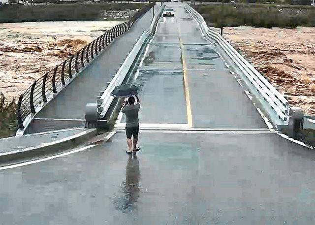 제9호 태풍 ‘마이삭’의 영향으로 다리가 붕괴되기 직전 다리 앞에서 홀로 차량 통행을 막아선 주민의 이야기가 화제다.