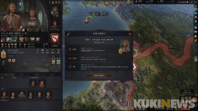 [쿠키뉴스] 강한결 기자 = '유로파 유니버스', '문명', '토탈 워'. 역사 기반 시뮬레이션 게임을 좋아하는 사람들에게는 타임머신이라고 불리는 게임이다. 그리고 이 부분의 '끝판왕' 격인 게임이 있다. 바로 파라독스 인터렉티브사에서 출시된 '크루세이더 킹즈'다.