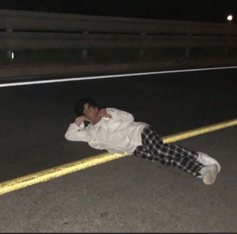 공개된 사진 속 양홍원은 어두운 도로 위에 서서 바지를 내리고 엉덩이를 적나라하게 노출했다. 이어 양홍원은 도로 위에 누운 채 담배를 피우는 모습을 추가로 게재했다.
