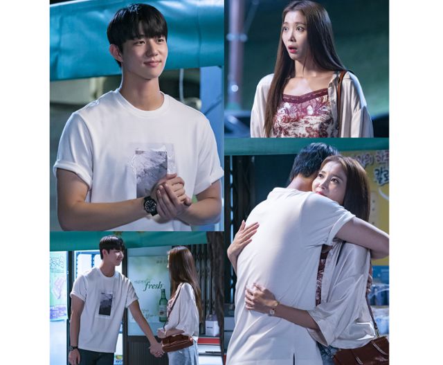 '한다다' 기도훈, 오윤아 포옹 장면이 공개됐다.스튜디오드래곤, 본팩토리 제공