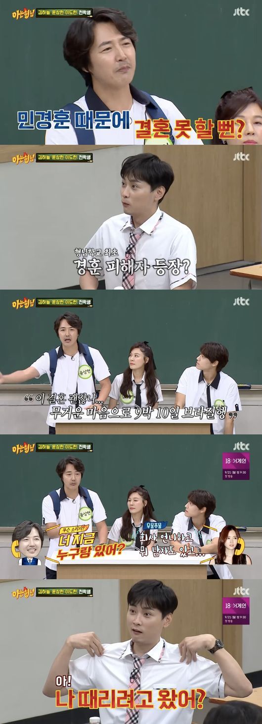 이날 윤상현은 민경훈 때문에 결혼을 못할 뻔 했다며 폭탄 선언을 해 놀라움을 자아냈다. 민경훈은 "상현이를 처음봤다"며 어리둥절해 했고, 윤상현 역시 민경훈을 처음 본다고 밝혀 그 사연에 궁금증을 더했다.