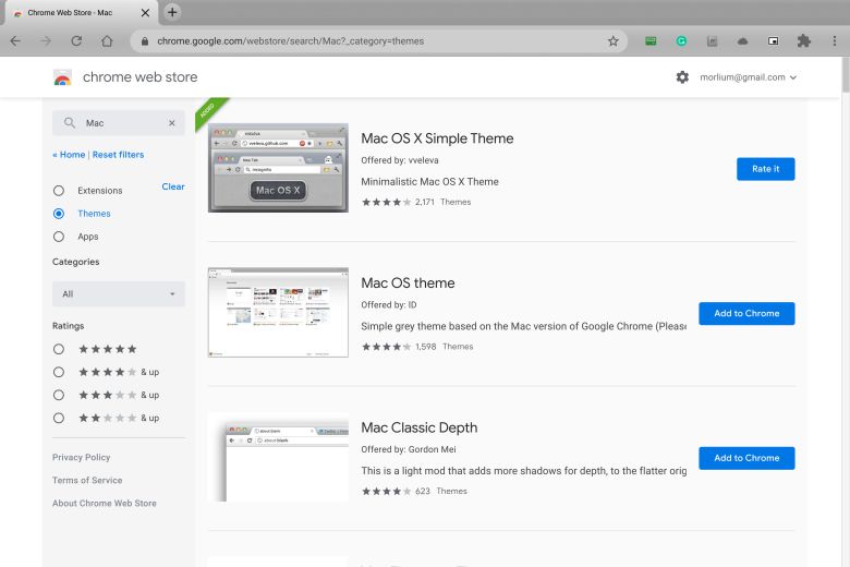 크롬 브라우저가 너무 PC와 비슷하다고 느껴진다면, 아주 다양한 방법으로 이를 변경할 수 있다. 크롬 웹스토어로 이동해 사이드 바에서 ‘테마’를 선택하고, 크롬 브라우저를 맥 스타일로 꾸밀 수 있는 다양한 옵션을 찾아보자. 세련되고 모던한 느낌을 원하면, 맥 OS X 심플 테마(Mac OS X Simple Theme)나 맥 OS 테마(Mac OS theme)이 좋지만, 클래식 아쿠아 포 맥(Classic Aqua For Mac)을 선택해 향수를 느낄 수도 있다.