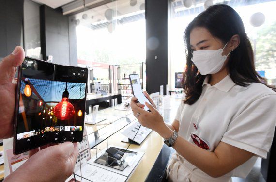 삼성전자가 이동통신 3사와 자급제 채널에서 갤럭시 Z 폴드2와 갤럭시 Z 플립 5G의 사전예약을 시작한 11일 오전 서울 광화문 KT올레스퀘어에서 고객이 제품을 살펴보고 있다. 사전예약은 15일까지 진행되고 갤럭시 Z 폴드2의 가격은 239만8000원, 갤럭시 Z 플립 5G의 가격은 165만원이다.사진=박범준 기자