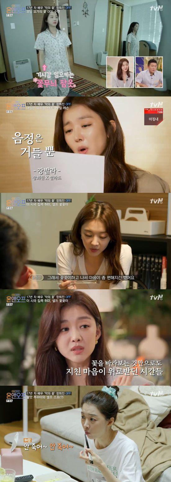 장희진은 "작년 '바벨' 드라마를 찍고 나서 너무 지쳤다. 그때 슬럼프 극복을 위해 노력을 했지만 극복이 잘 되지 않았고, 그때 꽃꽂이를 하게 됐다"고 꽃꽂이를 도전한 계기를 밝혔다.