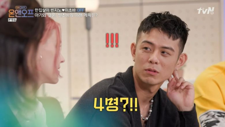 특히 미초바는 아이 계획을 묻는 질문에 "4명?"이라고 답하기도. 빈지노는 "4명이면 너는 괜찮냐"라며 당황스러운 마음을 감추지 못해 웃음을 안겼다.