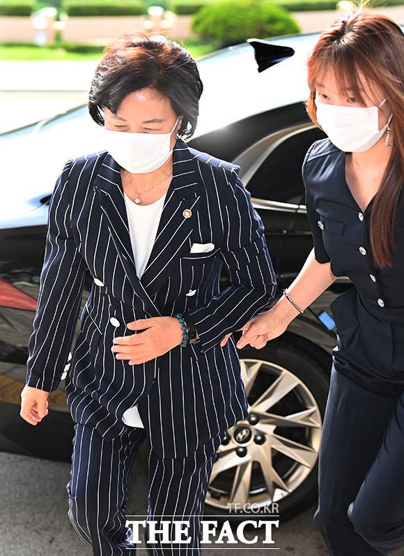 '아들 군 특혜 의혹'을 받고 있는 추미애 법무부 장관이 11일 오전 경기도 과천 정부과천청사 법무부로 출근하고 있다./이선화 기자 |