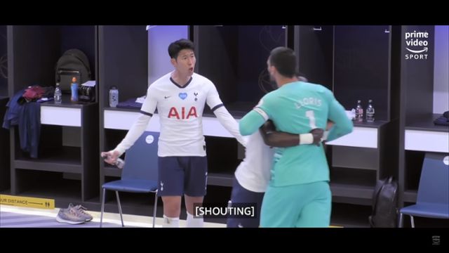 아마존 프라임 비디오가 제작한 잉글랜드 프로축구 토트넘 다큐멘터리 영상 예고편에서 손흥민의 말은 '샤우팅(소리치는 중·Shouting)'으로만 자막이 처리된 반면 위고 요리스의 발언은 영어 자막이 정확히 표기돼있다. 아마존 프라임 비디오 스포츠 유튜브 캡처 |