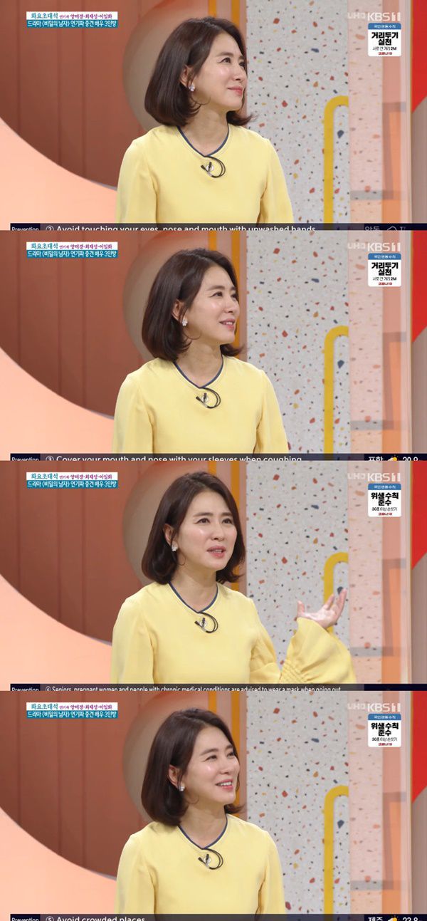 그는 "'비밀의 남자'에서 이진우 씨랑 정말 화목한 부부로 지내고 있다. 손을 잡고 길을 걸어 다니는 장면이 있는데 제가 '정말 이렇게 손을 잡고 길을 걷는 다정한 부부가 얼마나 있을까요'라고 물었더니 본인은 아직도 그렇게 늘 다닌다고 하시더라"라고 밝혀 눈길을 끌었다.
