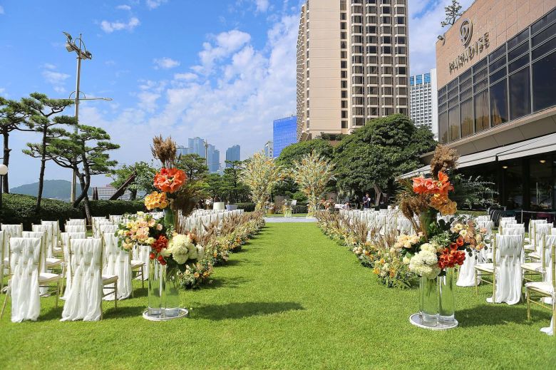 파라다이스호텔 부산의 '로맨틱 가든 웨딩'© 뉴스1(파라다이스 제공) |