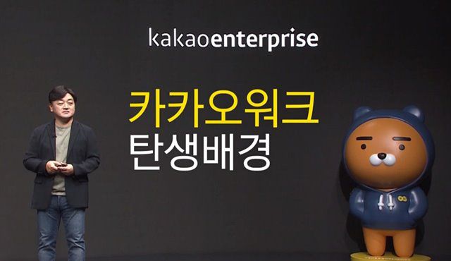 카카오엔터프라이즈가 종합 업무용 플랫폼 '카카오워크'를 공개하고 기업용 메신저 시장 공략에 나섰다. /카카오 간담회 갈무리 |
